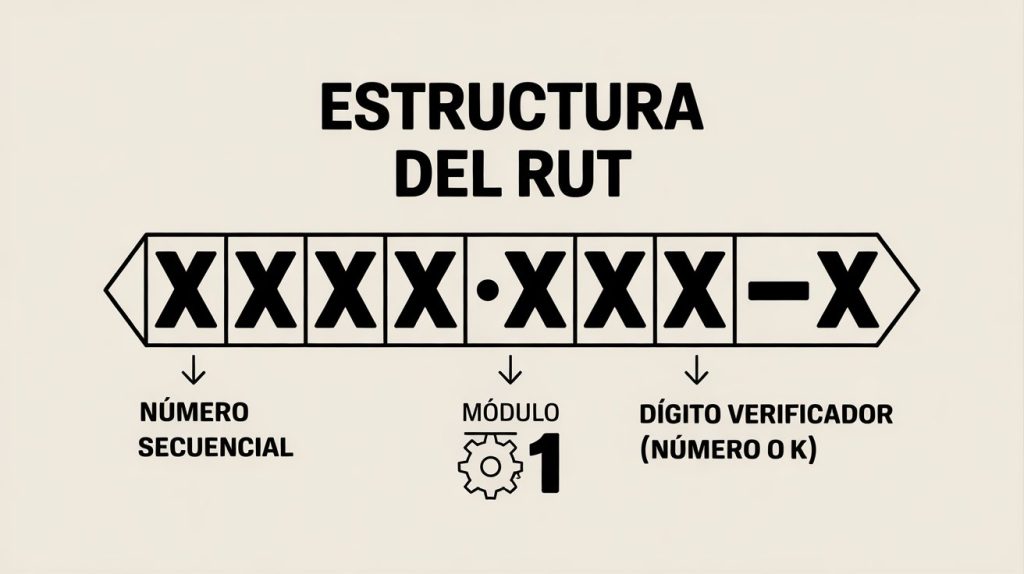 El RUT chileno tiene un formato XX.XXX.XXX-X. La parte final (después del guion) es el dígito verificador. Este dígito se calcula con una fórmula especial (Módulo 11) para asegurar que el RUT sea válido y evitar errores al escribirlo.